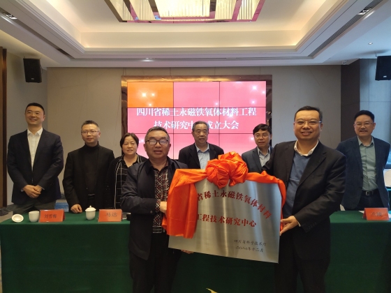 2021年3月19日,经四川省科技厅审批认定的“四川省稀土永磁铁氧体材料工程技术研究中心”成立大会在富顺县瑞祥大酒店隆重举行。自贡市科学技术局、富顺县科技和经济信息化局、自贡晨光科技园区管委会等相关部门领导,及共建单位四川大学材料工程学院、宜宾职业技术学院领导相关专家、教授,自贡市江阳磁材有限责任公司董事会成员、经营班子,工程技术人员共五十余人参加了大会。自贡市江阳磁材有限责任公司是国内永磁铁氧体材料行业西南地区领军企业,尤其是公司通过实施国家攀西第3批重大科技项目---《高性能稀土铁氧体磁性材料及元器件中